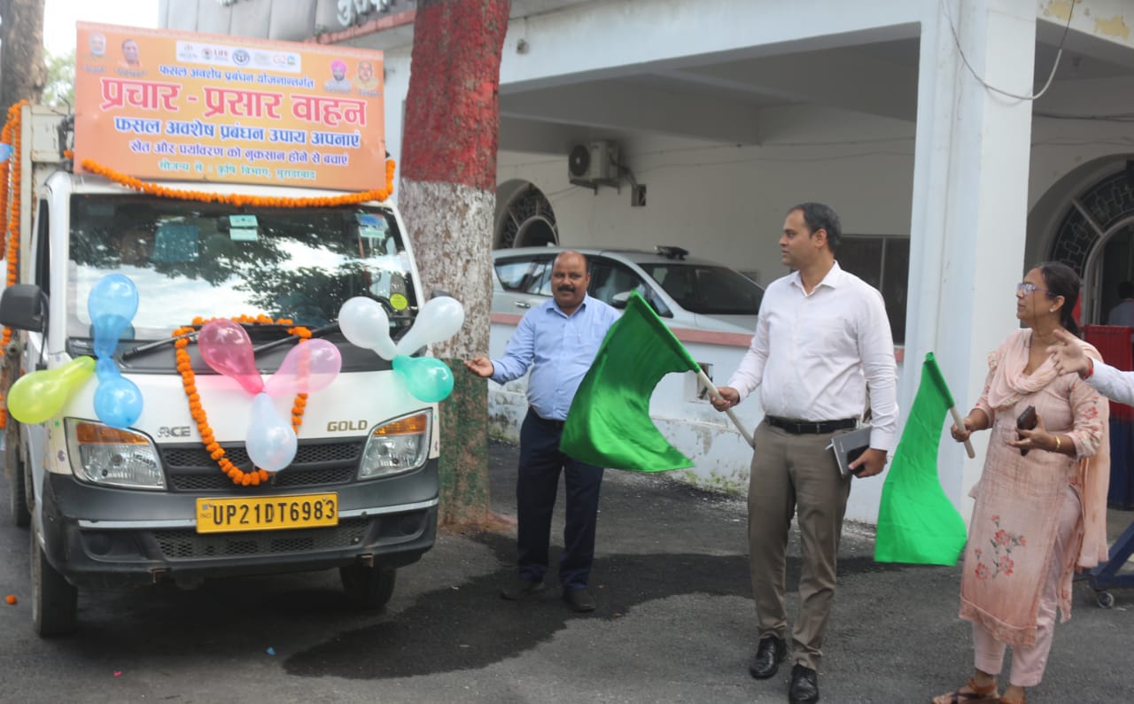 जिलाधिकारी अनुज सिंह एवं एडीएम वित्त श्रीमती ममता मालवीय द्वारा पराली प्रबंधन के प्रति जागरुकता हेतु प्रचार वाहन को हरी झंडी दिखाकर कलेक्ट्रेट मुरादाबाद से रवाना किया गया।प्रमोशन आफ एग्रीकल्चर उप निदेशक कृषि संतोष कुमार द्विवेदी ने बताया कि मैकेनाइजेशन फार इनसीटू मैनेजमेन्ट आफ क्राप रेजीड्यू योजना के अंतर्गत धान की पुआल / गन्ने की पत्तियां/ फसल अवशेष को न जलाने एवं सडाकर खाद बनाये जाने हेतु कृषकों को जागरुक करने के लिए कृषि विभाग द्वारा प्रचार वाहन को प्रत्येक विकास खंड में चलाया जायेगा तथा कृषकों को जागरुक किया जायेगा।उन्होंने बताया कि जिलाधिकारी के निर्देश पर राजस्व विभाग, कृषि विभाग और पुलिस विभाग की संयुक्त निगरानी टीम पराली प्रबंधन हेतु जनपद स्तर, तहसील स्तर एवं विकास खंड स्तर पर बनाई गई है।पराली जलाये जाने की सैटेलाईट के माध्यम से सूचना प्रति दिन प्राप्त होती है, जिसमें अक्षांश, देशान्तर के साथ स्थल दिया रहता है, जिसके आधार पर कृषि विभाग एवं राजस्व विभाग के कर्मचारी स्थलीय निरीक्षण करके आख्या देते है।पराली जलाये जाने पर 02 एकड तक 5000 रुपए, 02 से 05 एकड तक 10000 रुपए तथा 05 एकड से अधिक होने पर 30000 रुपए का जुर्माना लगाये जाने का प्राविधान है तथा कृषि विभाग की योजनाओं के लाभ से भी वंचित किया जा सकता है।