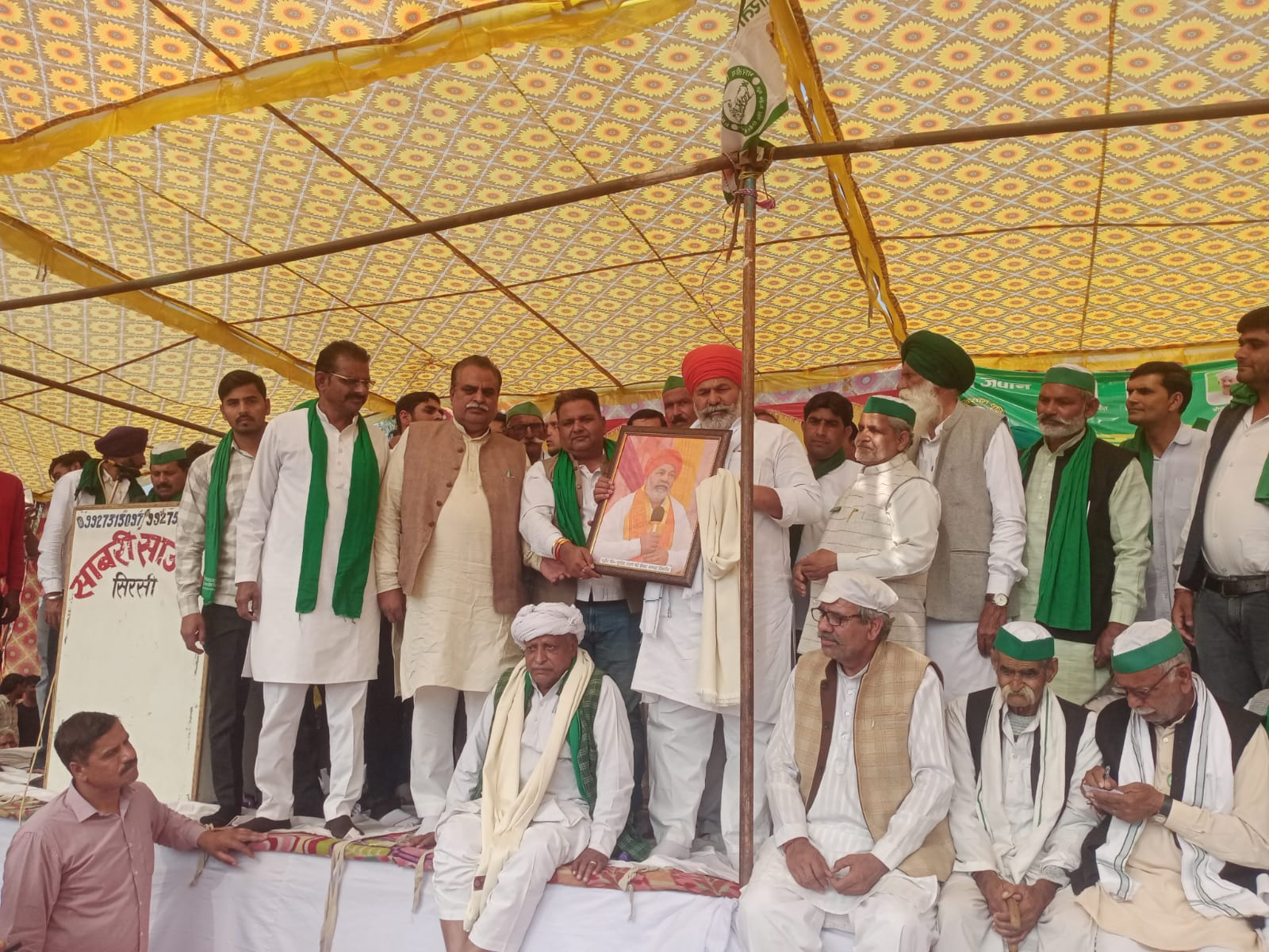 बिजनौर ,जिले के नूरपुर ब्लाॅक के सैदपुर माफी गांव में भारतीय किसान यूनियन की मुरादाबाद मंडल की तीन जिलों की एक महापंचायत का आयोजन किया गया था जिसमें कार्यक्रम के मुख्य अतिथि के रूप में भारतीय किसान यूनियन के राष्ट्रीय प्रवक्ता चौधरी राकेश टिकैत उपस्थित रहे। मुख्य अतिथि चौधरी राकेश टिकैत ने कहा कि केंद्र की नरेंद्र मोदी सरकार ने हम किसानों के खिलाफ तीन काले कृषि कानून बनाए हैं। इसमें ये प्रावधान है कि हम 300% ड्यूटी भारत के सेब पर लगा सकते हैं। जबकि दूसरे देश भूटान और नेपाल में ये नहीं है। भारत में सोयाबीन का दूध अमेरिका से आयेगा। विदेशों को भारत से बड़ा मार्केट नहीं मिल सकता। बाहर का माल भारत में आएगा तो फिर भारत का किसान बर्बाद हो जाएगा। इन सभी का हमे एक बड़े स्तर पर विरोध करना होगा। उन्होंने कार्यकर्ताओं को संबोधित करते हुए कहा कि जब तक आप जिंदा रहोगे तो आप संगठन में काम करोगे। भारतीय किसान यूनियन के राष्ट्रीय प्रवक्ता ने खेती की जमीन के धारा 80 के तहत प्लाटिंग में बदलने को किसानों के लिए एक गंभीर चिंता का विषय बताया है। ये हम सभी किसानों के लिए एक चक्रव्यूह के समान है। जिसमें हम सभी किसान बुरी तरह से फंस चुके हैं।देश के सभी किसानों को इसका बड़े पैमाने पर विरोध करना होगा। अब सरकार की गलत पॉलिसी का विरोध करने का समय आ गया है।मोदी सरकार ने देश के सवर्ण समाज के लोगों को यूजीसी के नाम पर उलझा कर रख दिया है। यूजीसी की लाकर मोदी सरकार जिम्मेदार सवर्ण समाज को कमजोर करने का कार्य किया है।उन्होने देश को बर्बाद होने से बचाने के लिए सभी वर्ग के लोगों के लिए समान कानून बनाने की मांग की।इस अवसर पर निर्देश चौधरी प्रदेश महासचिव भाकियू महिला मोर्चा,चौधरी ऋषिपाल सिंह भाकियू के प्रदेश उपाध्यक्ष पश्चिमी उत्तर प्रदेश, दर्शन सिंह विश्नोई तहसील अध्यक्ष कांठ,गायत्री देवी भाकियू महिला मोर्चा जिलाध्यक्ष संभल,आलोक कुमार प्रदेश उपाध्यक्ष, सुनील प्रधान जिलाध्यक्ष बिजनौर, समरपाल सिंह मुख्य महासचिव,मनप्रीत सिंधू युवा जिलाध्यक्ष बिजनौर, चौधरी कविराज सिंह तहसील अध्यक्ष धामपुर, महेंद्रपाल सिंह ब्लॉक अध्यक्ष, सरदार अवतार सिंह युवा शक्ति दल टिकैत संभल, अभिराज सिंह अमरोहा, शीशपाल सिंह जिला संरक्षक बिजनौर, चौधरी चंद्रपाल सिंह नूरपुर ब्लाॅक अध्यक्ष, सहारनपुर मंडल अध्यक्ष अशोक कुमार, विजेंद्र पाल सिंह यादव प्रदेश अध्यक्ष पश्चिमी उत्तर प्रदेश, मनोज चौधरी मंडल अध्यक्ष मुरादाबाद, विजयपाल सिंह राष्ट्रीय उपाध्यक्ष भाकियू टिकैत, चौधरी दानवीर सिंह भाकियू प्रदेश उपाध्यक्ष उत्तर प्रदेश, राष्ट्रीय उपाध्यक्ष ओमपाल सिंह मलिक, लुधियान सिंह, घनेंद्र शर्मा जिलाध्यक्ष मुरादाबाद कार्यक्रम की अध्यक्षता च