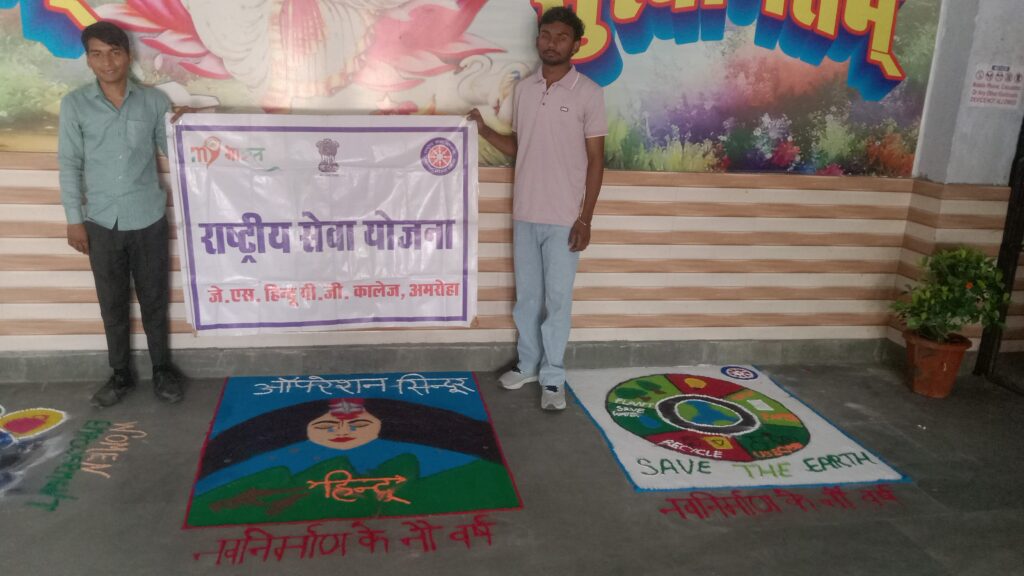 अमरोहा, जे एस हिंदू पीजी कॉलेज अमरोहा में आज उत्तर प्रदेश सरकार के 9 वर्ष पूर्ण होने के अवसर पर उत्तर प्रदेश सरकार की उपलब्धियां को महाविद्यालय के प्रत्येक छात्र-छात्राओं तक पहुंचाने के लिए महाविद्यालय में एक भव्य कार्यक्रम आयोजित किया गया।जिसमें महाविद्यालय के प्राचार्य प्रोफेसर वीर वीरेंद्र सिंह ने छात्र-छात्राओं को उत्तर प्रदेश सरकार की उपलब्धियां के बारे में बताया। विशेषकर युवाओं के लिए शासन द्वारा संचालित सभी नीतियों की जानकारी देने का प्रयास किया और उत्तर प्रदेश सरकार की प्रगति की भी चर्चा की। इस अवसर पर जे एस हिन्दू पीजी कालेज के राष्ट्रीय सेवा योजना के कार्यक्रम अधिकारी डॉ पीयूष कुमार शर्मा ने सभी छात्राओं को बताया कि उत्तर प्रदेश सरकार के विशेष प्रयासों से प्रदेश अब अपराध मुक्त हो चुका है और प्रगति के एक नए रास्ते पर चल रहा है। इसमें युवाओं को बहुत से बेहतरीन अवसर प्रदान किए जा रहे हैं।देश के सभी युवा आगे बढ़ें और इन अवसरों का लाभ उठाकर प्रदेश और देश की प्रगति में अपना योगदान दें।संगोष्ठी के बाद छात्र-छात्राओं ने रंगोली के माध्यम से अपने भाव प्रकट किए। कार्यक्रम का संचालन संस्कृत विभाग के अध्यक्ष डॉ अरविंद कुमार ने किया। इस अवसर पर महाविद्यालय का समस्त स्टाफ और बहुत बड़ी संख्या में छात्र-छात्राओं उपस्थित रहे।