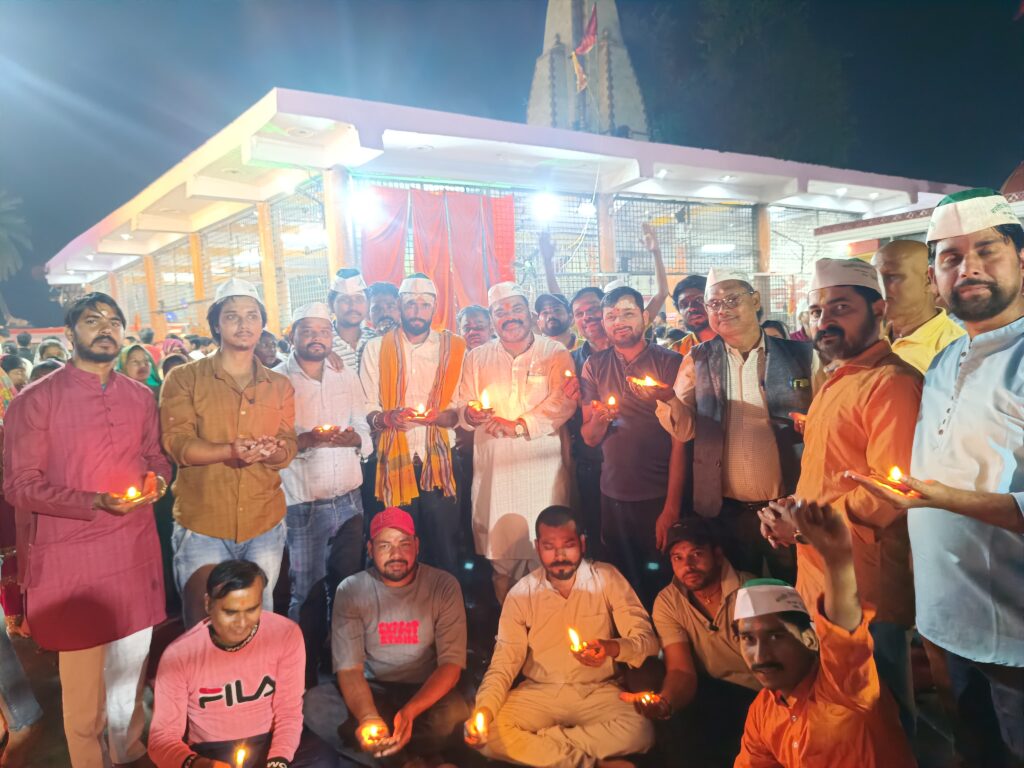 मुरादाबाद ,25 मार्च 2026 को भारतीय किसान यूनियन (तोमर) जनपद मुरादाबाद के जिला अध्यक्ष अनूप कुमार मिश्रा के नेतृत्व में सनातन नववर्ष के उपलक्ष्य में लालबाग स्थित शक्तिपीठ कालीमाता मंदिर में भव्य दीपोत्सव कार्यक्रम किया गया । किसान साथियों ने 1611 दीपकों से काली माता मंदिर को सजाया । काली माता की आरती कर विश्व कल्याण की कामना की तथा प्रसाद ग्रहण किया तत्पश्चात मंदिर के महंत सज्जन गिरी महाराज का आशीर्वाद प्राप्त किया । आज दीपोत्सव कार्यक्रम में अनूप कुमार मिश्रा, द्वारिकीनाथ गोस्वामी, मुकुल अग्रवाल, गोविंद सिंह, गौरव सैनी, केशव दत्त शर्मा, राहुल मिश्रा, विष्णु भारद्वाज, रिगेश शर्मा, विक्की प्रजापति, कैलाश प्रजापति, संजय सिंह, एड0 प्रदीप कुमार, आशीष शर्मा, हिमांशु शर्मा, हरपाल सिंह यादव, अरुण कुमार प्रजापति, योगेश कुमार, हिमांशु गोस्वामी, मनोज गोस्वामी, विष्णु प्रजापति, योगेश प्रजापति, महेंद्र प्रजापति, राजेश प्रजापति, अमर सिंह प्रजापति, अमन दीक्षित, गौरव सैनी, कान्हा, समीर प्रजापति, अमन प्रजापति, सुभाष पाल, अरविंद सैनी, अरविंद कश्यप, मिथुन कश्यप, कार्तिक मिश्रा, सिद्धांत मिश्रा, राम सारस्वत, प्रभात शर्मा, सुखराम प्रजापति, दीपक कुमार, करन वर्मा, सचिन वर्मा, राजन शर्मा, शिवम प्रजापति, संदीप पाठक, राजेश सागर एवं सैकड़ो की संख्या में भाकियू तोमर के पदाधिकारी एवं कार्यकर्तागण उपस्थित रहे । भारतीय किसान यूनियन तोमर के सभी साथियों ने काली माता मंदिर को जयकारों से गुंजित कर दिया । सभी साथियों ने भक्तिमय होकर जय माता की, भारत माता की जय आदि का जयघोष किया ।