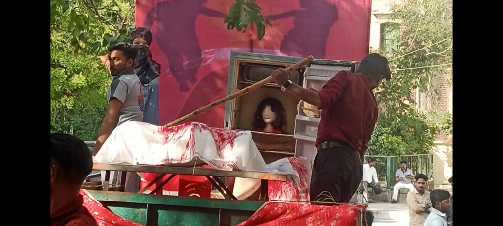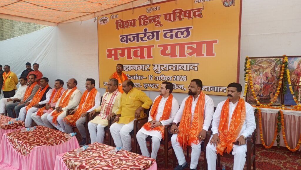 मुरादाबाद। पीतल नगरी मुरादाबाद की सड़कें आज भगवा रंग में रंगी नजर आईं। बजरंग दल द्वारा आयोजित भव्य ‘भगवा शोभा यात्रा’ में हजारों कार्यकर्ताओं के जोश और उत्साह के बीच एक ऐसी झांकी आकर्षण का केंद्र रही, जिसे देखकर हर कोई हैरान रह गया। यह झांकी ‘लव जिहाद’ के मुद्दे पर आधारित थी, जिसने पूरी यात्रा में लोगों का ध्यान अपनी ओर खींचा।झांकी ने खींचा सबका ध्यानशोभा यात्रा में कई धार्मिक और सांस्कृतिक झांकियां शामिल थीं, लेकिन ‘लव जिहाद’ को दर्शाती विशेष झांकी चर्चा का विषय बनी रही। इस झांकी के माध्यम से समाज को जागरूक करने का प्रयास किया गया, जिसे देखने के लिए सड़कों पर भारी भीड़ उमड़ पड़ी। प्रत्यक्षदर्शियों का कहना था कि इस कलाकृति और इसके संदेश ने लोगों को सोचने पर मजबूर कर दिया।